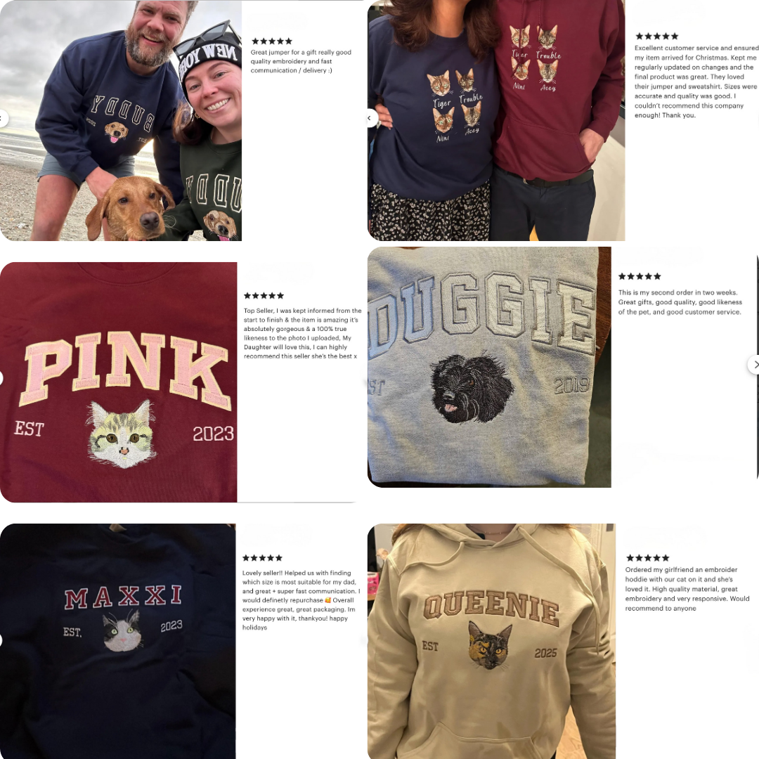 Custom Embroidered Pet Portrait Sweatshirt – Personalised Pet Gift UK