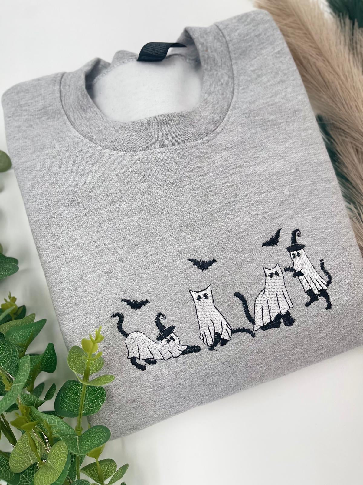 Cat & Ghost Sweatshirt β Embroidered Spooky Cute Halloween Jumper