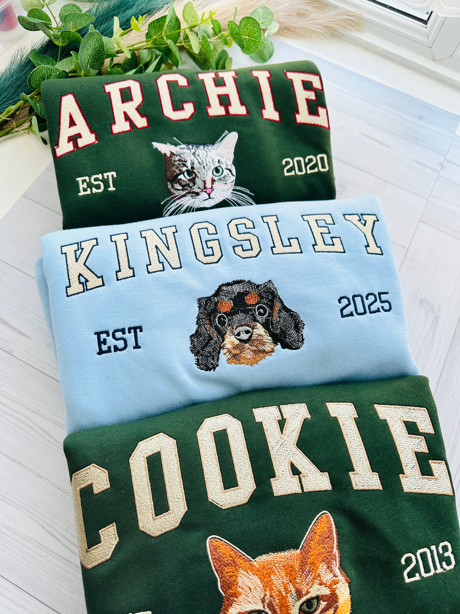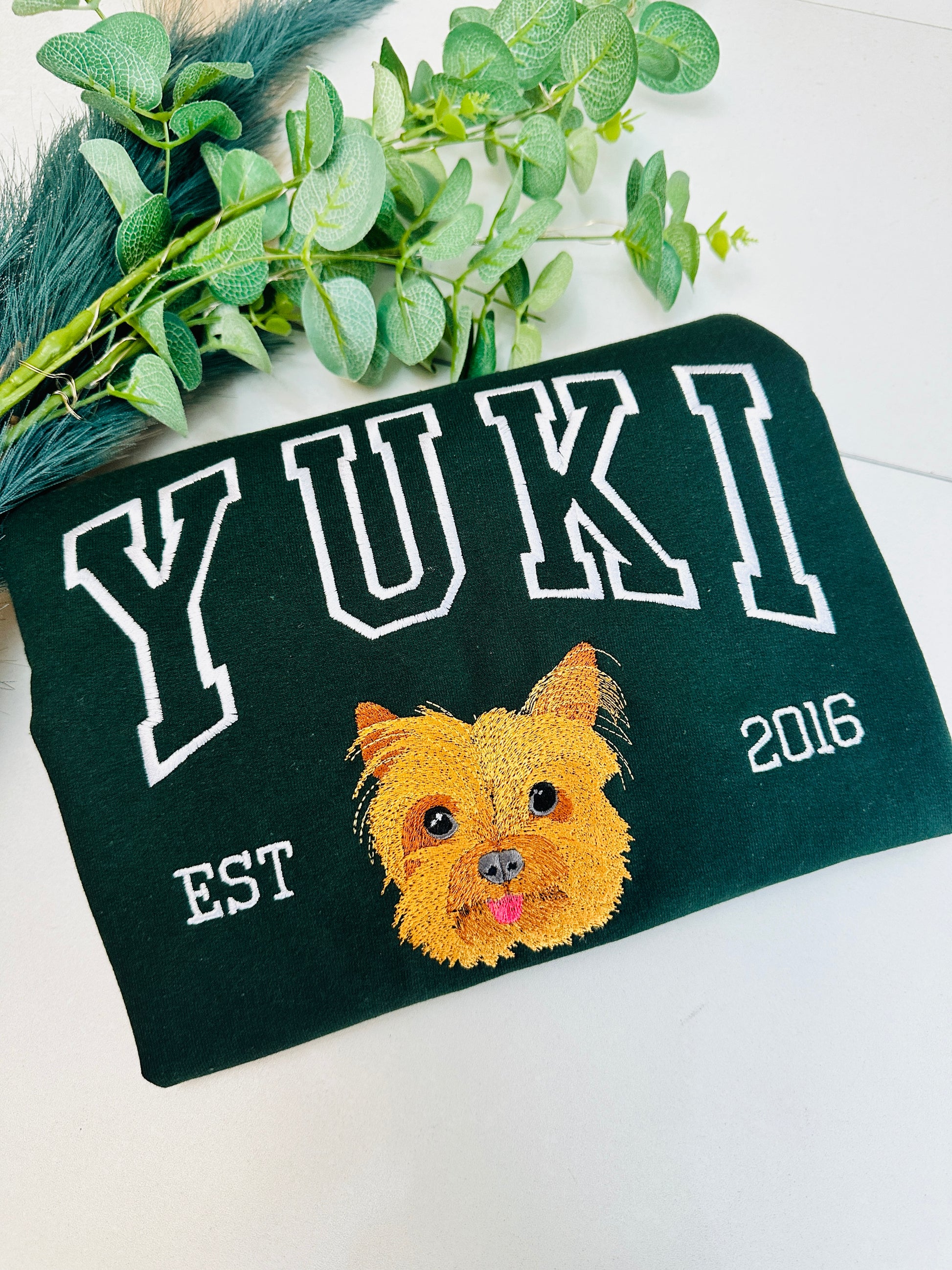 - Wrap yourself in warmth and cherished memories with our custom pet sweatshirt. Each cozy crewneck features a detailed personalized pet embroidery of your pet’s portrait and name, making it a one-of-a-kind keepsake that celebrates the bond you share. This sweatshirt isn’t just apparel