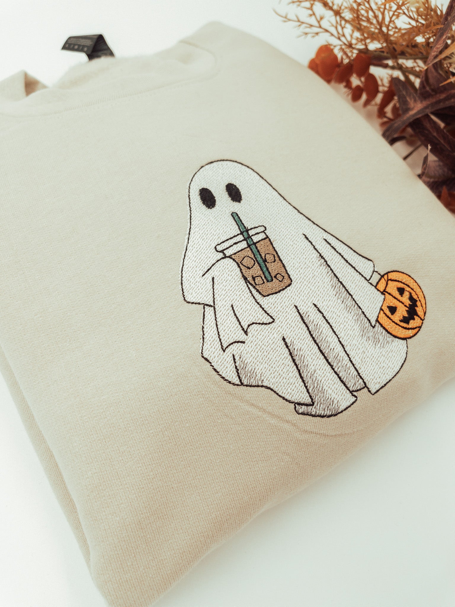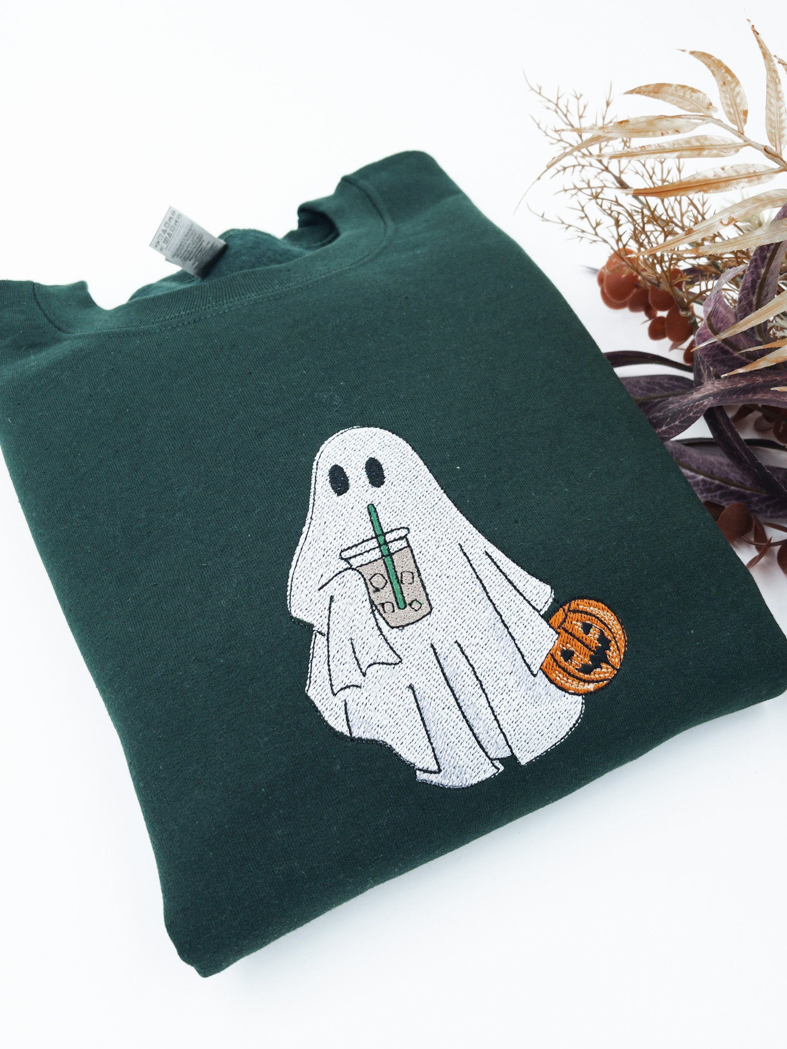 Upgrade your Halloween wardrobe with our embroidered ghost pumpkin coffee jumper. Made with high-quality materials, this jumper features a spooky ghost design perfect for the holiday season. Stay cozy and stylish at the same time with this one-of-a-kind piece. Don't miss out on the spooky fun!