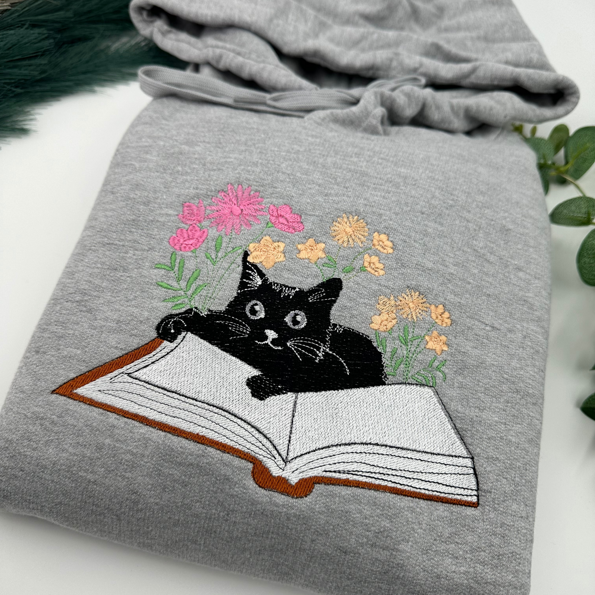 Crafted with precision and care, our embroidered Bookish Cat Hoodie is the perfect addition to any book lover's wardrobe. The intricate embroidery adds a touch of personality and style, while the soft material ensures comfort and warmth. Show off your love for literature with this unique and functional hoodie.